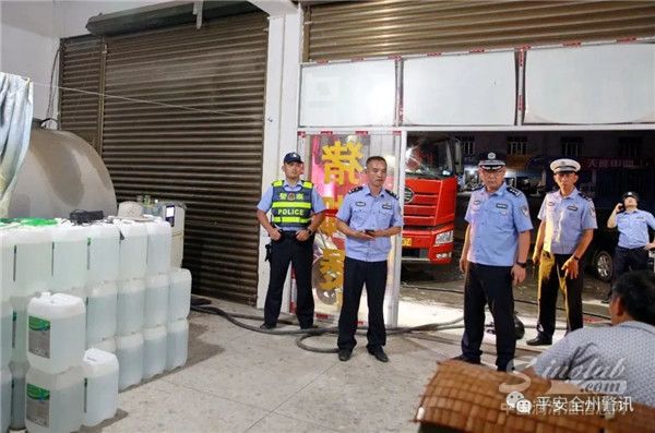 近期,全州县公安局指挥中心接到群众报警称:在国道322线全州某路段有人非法买卖柴油。接警后,民警立即赶赴现场,到达现场后,发现该路段存在多个非法加油窝点,存在很大的安全隐患。为更加有效地打击该类违法犯罪活动,民警没有马上采取行动,而是将现场情况向县局领导汇报。获悉情况后,县局党委高度重视,要求从重从快打击该类违法犯罪行为。经过数日缜密侦查,民警逐步摸清了多个窝点的经营情况。在做好相关准备工作后,县局决定9月15日起联合县应急管理局、中石化公司对这些窝点实施联合查处。
