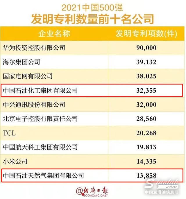 小编关注到,中国石化以32355件发明专利排名全国第4,中国石油以13858件专利排名全国第10。