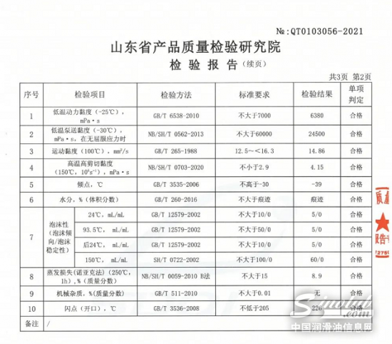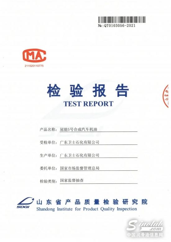 2021年产品质量国家市场监督管理局对我公司生产(销售)的产品-卫士冠能5号合成汽油机油进行抽查检验,检验项目十项均为合格。