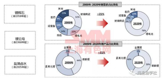 很简单。咱们可以考虑避开锂元素,以前就只有手机和咱们抢枪这种原料,现在不行了,如果来个纯电的柴油车,那底盘下来层电池得铺多少锂。大家可以看下图,动力电池行业这些年抢夺锂的一个趋势,我们抢不过他们,咱们换一个皂基,行不行?【号外,最幸运的是玻璃陶瓷行业,从32%直接减少到3%,看来,他们已经彻底摆脱对锂的依赖了,哈哈,或许被打的一点脾气也没了】