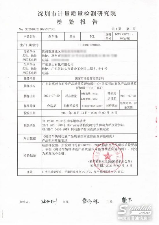 日本TCL刹车油再度通过市场抽检合格,自2010年至2021年,11年来,TCL刹车油(DOT3/DOT4)多次抽检均100%通过各地市质量监督局关于制动液的各项指标检测。