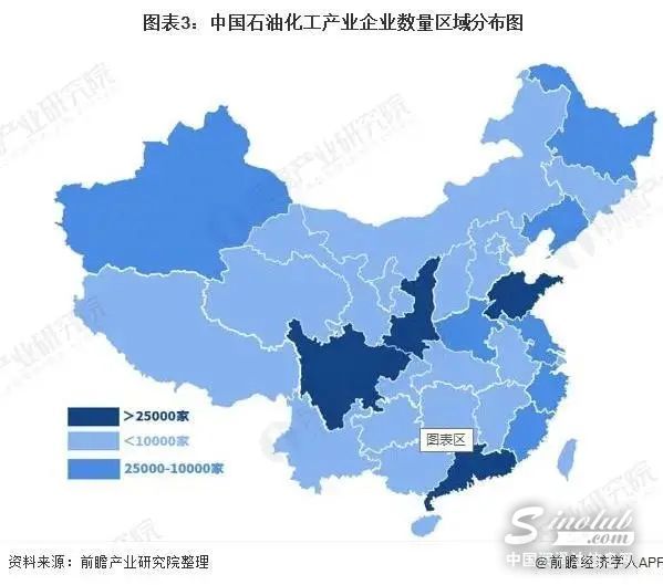 当前,中国石化产业正在迎来产业重构,企业利用国际国内两个市场两种资源的同时,推进工业结构、产业结构,包括经济结构的调整和优化。近年来我国石油化工产业区域结构在不断提升,落后产能不断淘汰,创新能力不断提升,国际化经营水平也在不断提高。通过企查猫统计数据显示,石油化工产业现存355291家相关企业,从企业数量上来看,排在前三位的分别是山东省、陕西省和广东省。分别为41531家、31605家和26789家。