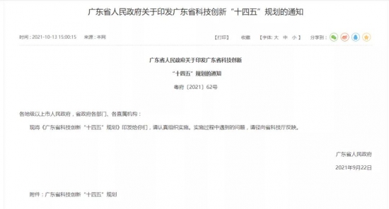 从 广东省人民政府网站获悉,10月13日,广东省人民政府发布《广东省科技创新“十四五”规划》。(扫描文末二维码可查看政策源文件)《规划》提出在前沿技术方面重点发展氢能、人工智能、区块链、智能传感、卫星互联网、空天科技、太赫兹、信息光子、低碳零碳负碳技术(碳达峰碳中和)、天然气水合物、材料基因工程、合成生物学和干细胞与再生医学。