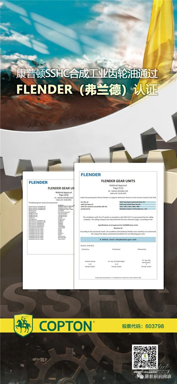 王者典范|康普顿SSHC合成工业齿轮油通过FLENDER(弗兰德)认证
