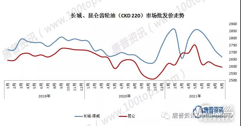 据唐普资讯价格监测,9月份我国液压油和齿轮油润滑油市场批发价总体呈现微涨状态,9月常规液压油产品46#市场批发均价 2686 元/桶(170kg),较上月上涨27元/桶,同比上涨7.36%,环比上涨1%。齿轮油 CKD220 市场批发均价3571元/桶(170kg),较上月上涨51元/桶,同比上涨12.98%,环比上涨1.45%。受全球极端天气导致上游炼油厂产量下降和基础油价格上涨以及海运价格不断上涨多重因素影响,导致9月进口油品价格有所上涨,而本月国产液压油品牌市场批发价则有所下降。本月进口工业齿轮油价格总体上涨,国产品牌出现了价格微降。本月进口油品上涨趋势明显,而国产品牌出现价格下降是由于进行了秋季促销活动,导致价格有所降温。