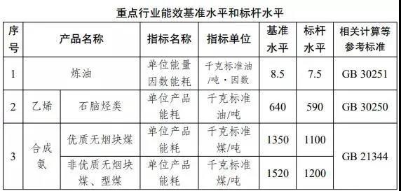 为了实现上述目标,同时发布《石化化工重点行业严格能效约束推动节能降碳行动方案(2021~2025年)》。《方案》确定了炼油、乙烯、合成氨、电石行业能效基准水平和标杆水平。