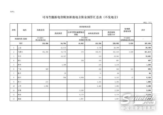 附件:1.可再生能源电价附加补助地方资金预算汇总表