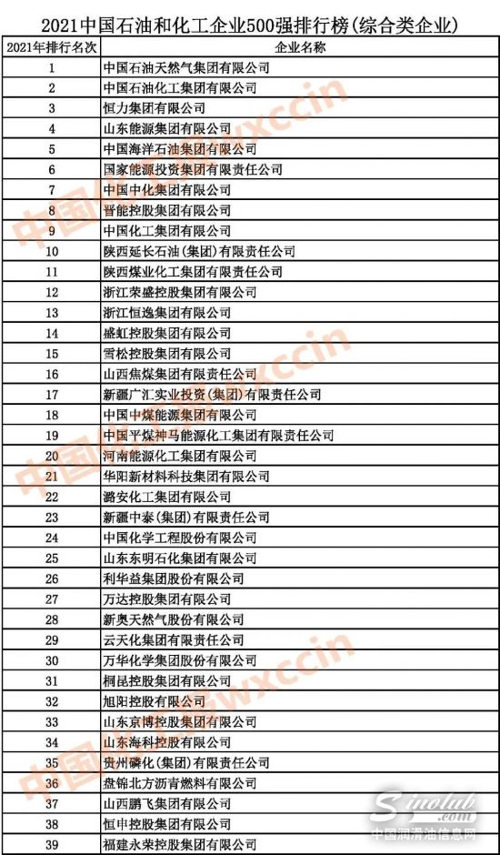 会议发布了2021中国石油和化工企业500强排行榜,中国石油化工集团有限公司、中国石油天然气集团有限公司、恒力集团有限公司3家企业位列榜单前三名。