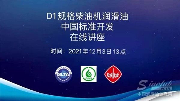 备受行业关注的“D1规格柴油机润滑油中国标准开发”报告将于2021年12月3日(周五)13点至16点在上海市润滑油品行业协会在线讲座平台进行直播。