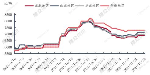 本月招标企业数量197家,较上月增加41家,润滑油总询单449.1吨,较上月减少504.3吨。国际原油大幅下跌,欧洲疫情持续恶化,市场对需求预期的担忧情绪增加。目前下游工厂进入消费淡季,需求下降,但终端招标企业数量有所增长,说明大部分企业仍以按需采购为主,零星询价随用随采。新年降至,部分工厂会有小幅备货。预计进入十二月,润滑油终端企业采购数量会有小幅上升。