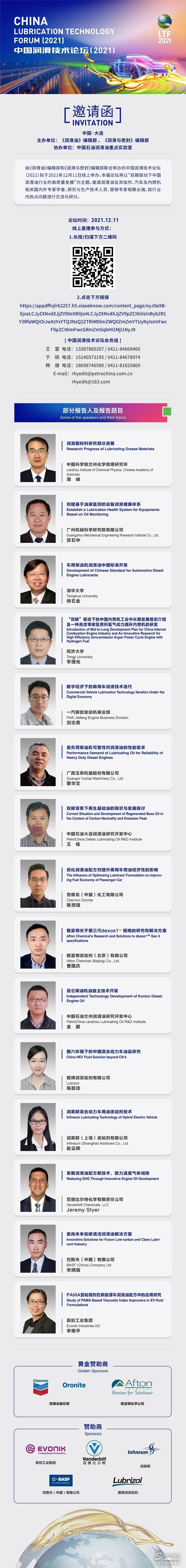 中国润滑技术论坛(2021)拟于2021年12月11日线上举办,我们诚邀各位专家学者扫码观看视频直播,共谋中国润滑油行业的高质量发展之路。