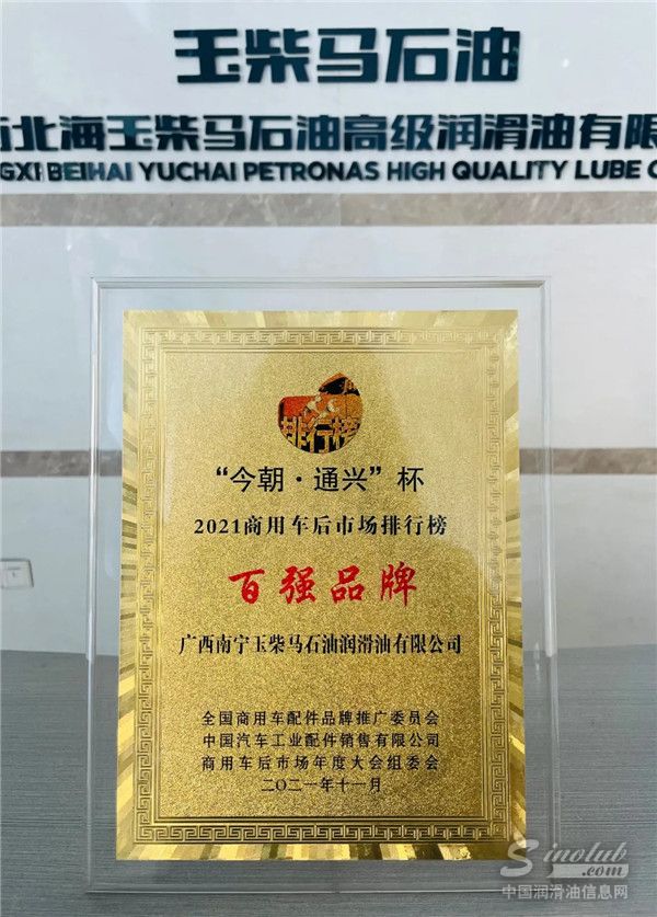 玉柴马石油荣获2021中国商用车后市场“百强品牌”!