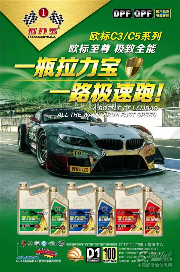 作为一家专业汽车养护服务商,拉力宝润滑油一直以来致力于为车辆养护油、液、水提供系统完善的解决方案,先后成为中国环塔拉力赛、中国越野拉力赛、D1国际漂移赛、全国场地越野赛等多家国内外赛车俱乐部指定赛事用油。并且与双龙、壳牌、台塑、英力士等基础油供应商,雅富顿、润英联等添加剂供应商达成长期战略合作,使用拉力宝公司旗下产品享有全球汽车润滑油单台发动机100万美金保单,工业设备润滑油500万美金保单的超值保障。
