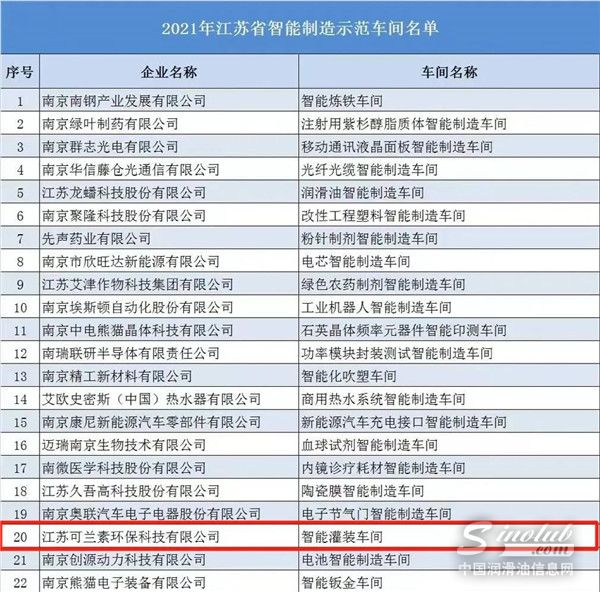 再升级!可兰素获评2021年江苏省智能制造示范车间