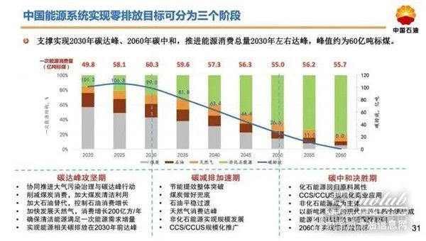中国方面,能源系统要实现零碳排放可以先后分为三个阶段,依次是碳达峰攻坚期,碳减排加速期和碳中和决胜期。