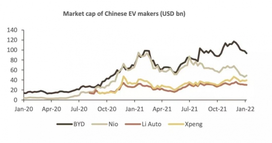 按照瑞银的统计数据,从2020年到2022年,“蔚小理”的市值增长速度一度超过比亚迪,其中又以蔚来汽车的增长最引人注目。“自主品牌崛起是大势所趋”,瑞银中国汽车行业研究主管巩旻表示。