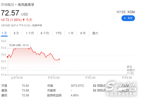 埃克森美孚日内涨幅1%,年初至今累计涨幅达14%。
