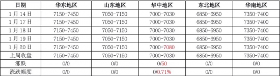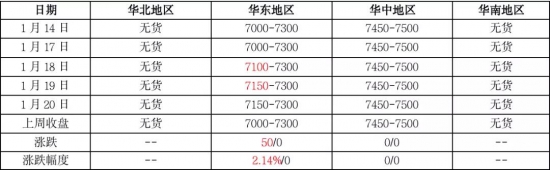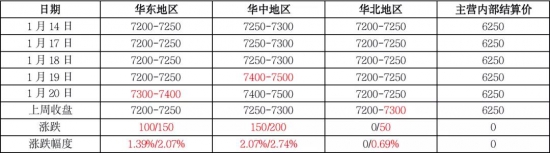 本周国内白油市场整体稳中小涨为主。本周国际原油整体偏强,突破前期高点上涨,原料成本高位持续支撑国内白油市场价格,加之目前上游主流厂家整体库存低位,因此本周国内白油市场稳中上行为主。需求面来看,春节假期临近,下游商家整体进购积极性一般,商家按需备货,市场交投偏谨慎操作。据卓创资讯数据统计,截至1月20日国内5#工业白油主流价格区间为7200-7500元/吨,5#工业白油全国均价为7286元/吨,较1月13日环比上涨0.21%;10#工业白油主流价格区间为6850-7450元/吨,10#工业白油全国均价为7163.64元/吨,较1月13日环比上涨0.25%。
