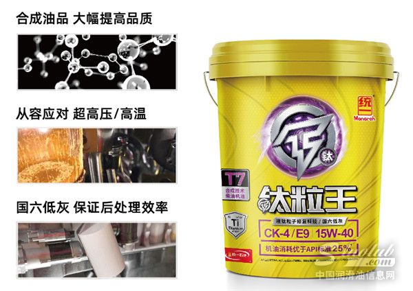 早在国六排放标准实行前,统一润滑油便开始着手打造节能降碳产品,钛粒王T7 CK-4便是其中之一。钛粒王T7 CK-4在商用车售后市场率先采用合成型基础油进行调配,其配方中的基础油有30%为再生基础油,从而具有显著的碳减排效果,较普通矿物型柴油机油可大幅提高油品综合性能,有效分散EGR(废气再循环系统)产生的烟炱颗粒,降低发动机磨损,延长发动机综合使用寿命。另外,T7 CK-4凭借其卓越的抗氧化能力,超越 API 标准 56%,有效抑制油品衰败及粘度增长,为车辆更长换油周期提供有效助力。