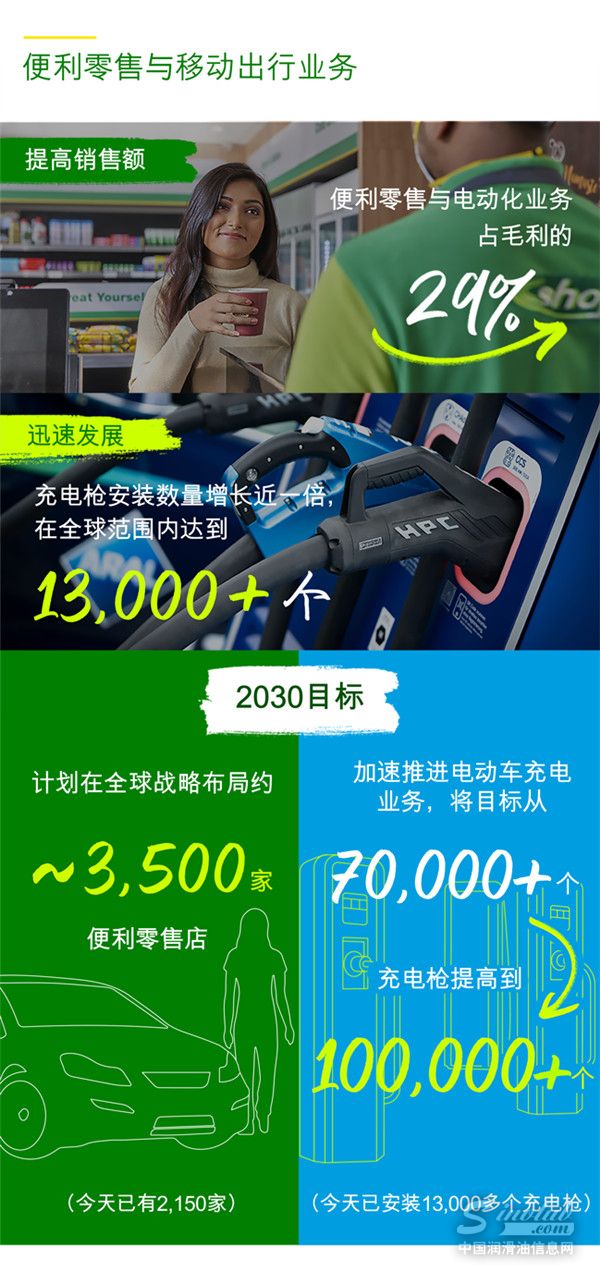 到2025年,我们计划将转型业务的投资增加到资本支出的40%以上,到2030年增加到50%左右。在5个转型增长引擎——生物能、便利零售、电动车充电业务、可再生能源和氢能的推动下,到2030年我们计划通过这些业务创造90亿至100亿美元的收益。