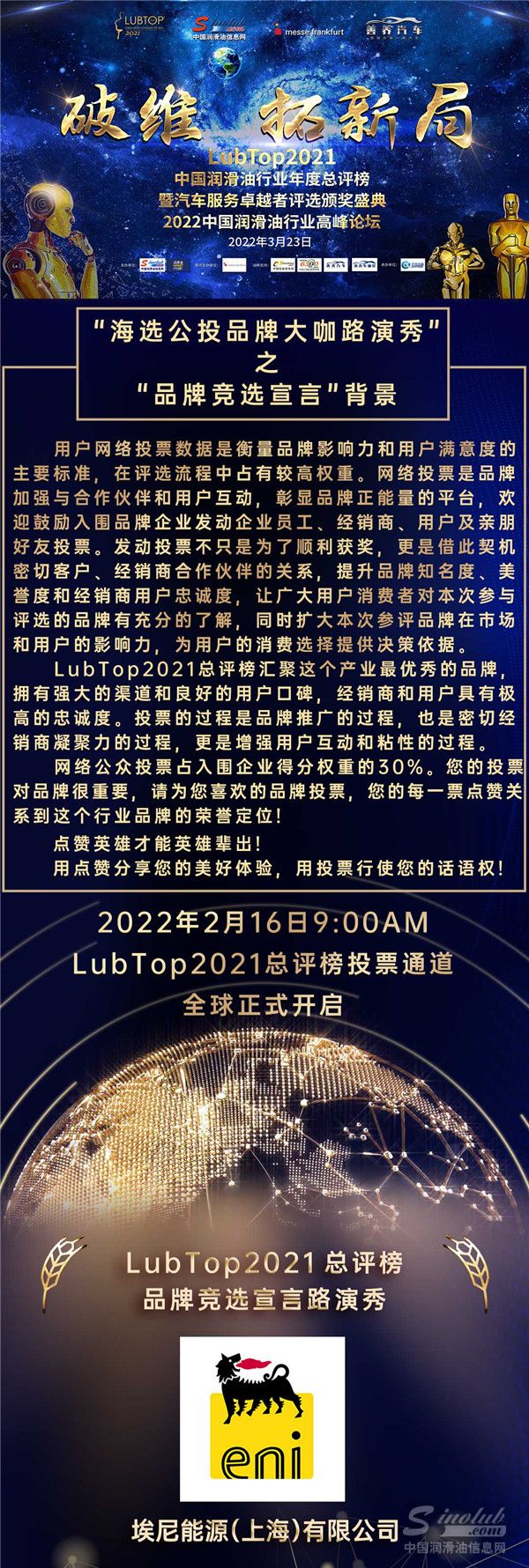 【海选公投品牌大咖路演秀】埃尼润滑油“品牌竞选宣言”