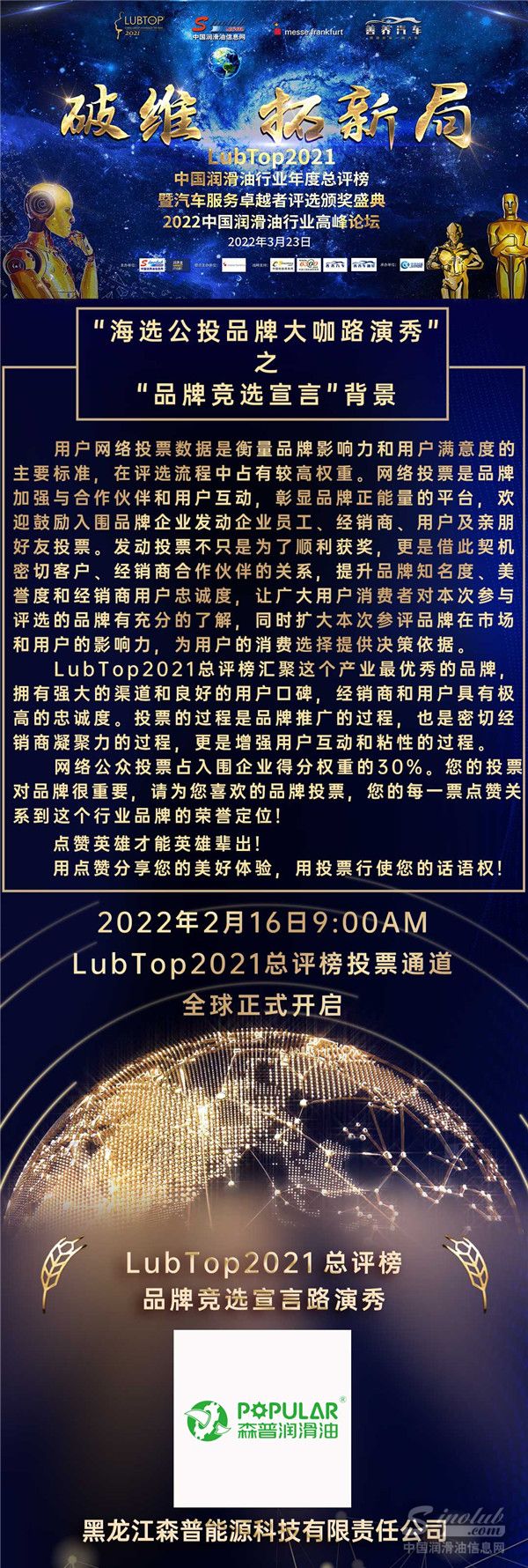 【海选公投品牌大咖路演秀】森普润滑油“品牌竞选宣言”