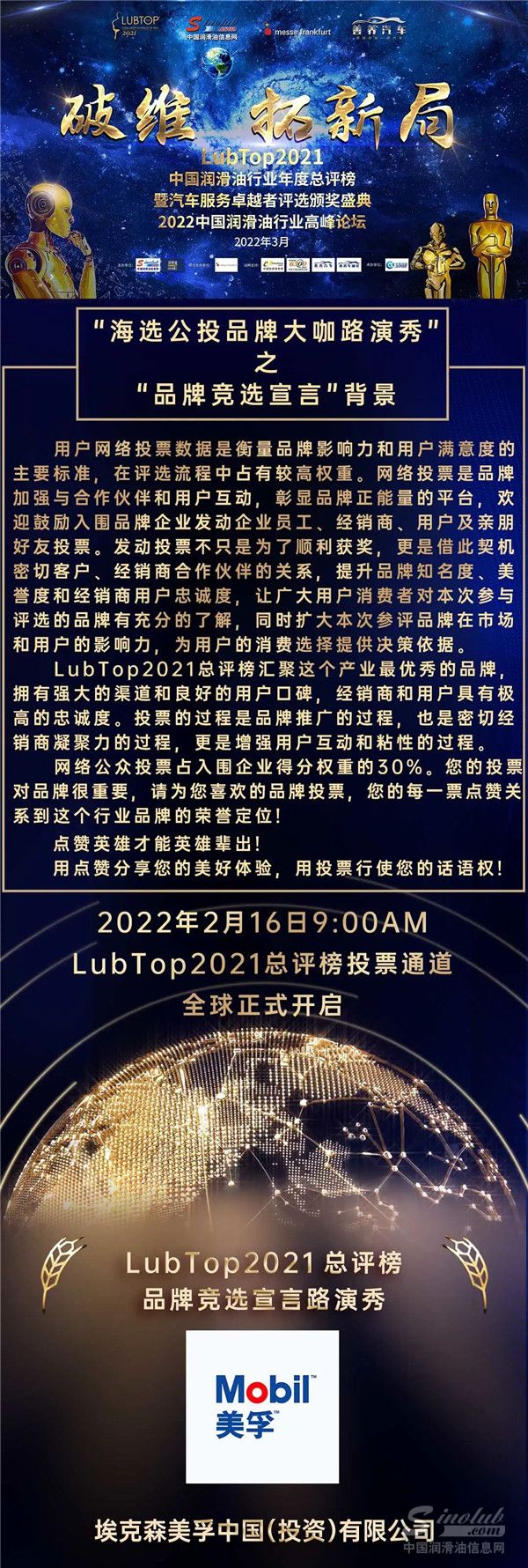 中国润滑油信息网是润滑油门户, 润滑油奥斯卡LubTop总评榜主办方,提供汽车润滑油、工业润滑油以及基础油最新行业资讯、润滑油品牌招商代理,为汽车车主和工业设备用户提供各种润滑油脂、工业油、机油品牌的用油知识。