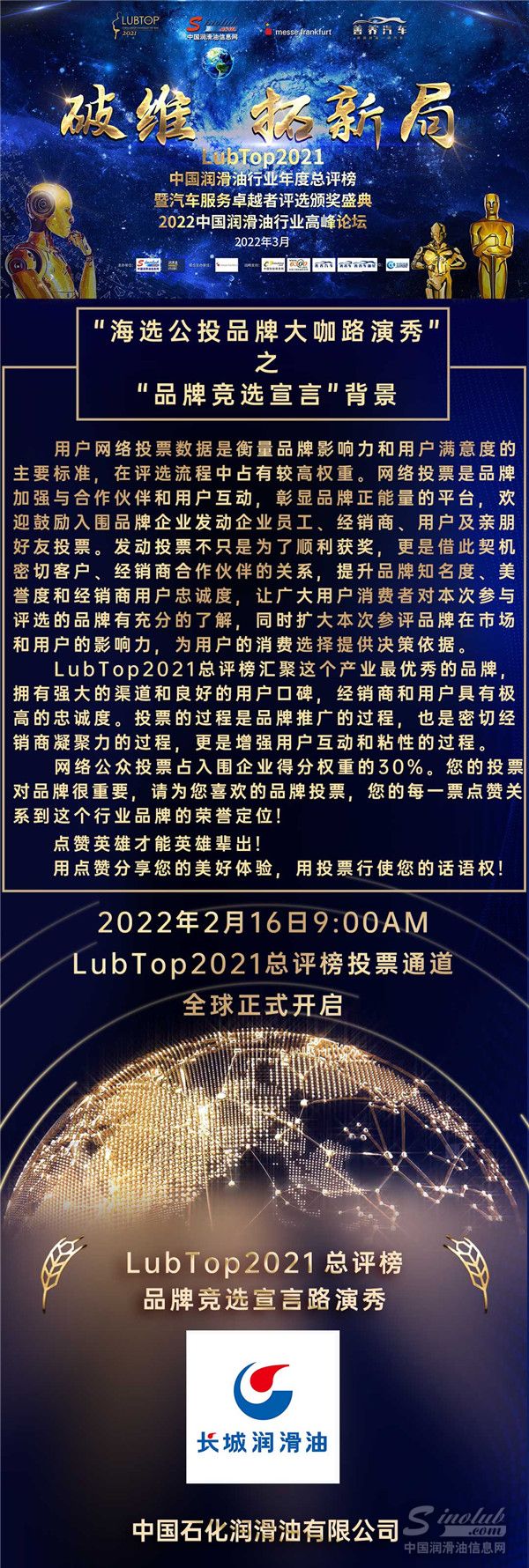 中国润滑油信息网是润滑油门户, 润滑油奥斯卡LubTop总评榜主办方,提供汽车润滑油、工业润滑油以及基础油最新行业资讯、润滑油品牌招商代理,为汽车车主和工业设备用户提供各种润滑油脂、工业油、机油品牌的用油知识。