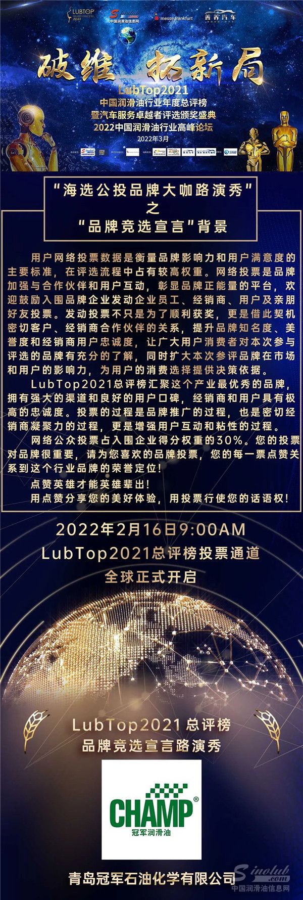 【海选公投品牌大咖路演秀】冠军润滑油“品牌竞选宣言”