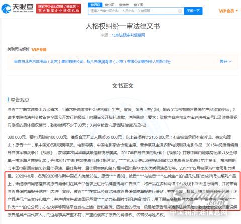 2月23日,据天眼查App显示,吴京与北壳汽车用品(北京)集团有限公司、超凡先锋润滑油(北京)有限公司等相关人格权纠纷一审法律文书公开。