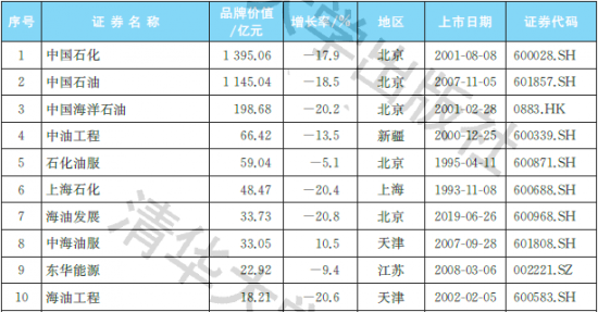 附:2021中国石油行业上市公司品牌价值榜单TOP10