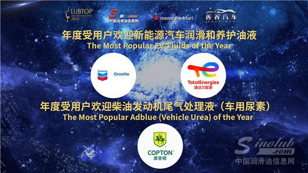 LubTop2021年度受用户欢迎新能源汽车润滑和养护油液