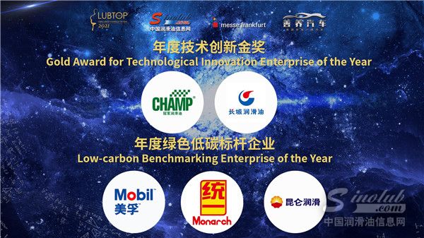 2022年3月28日,万众瞩目的“LubTop2021中国润滑油行业年度总评榜暨汽车后市场卓越者评选”颁奖盛典云端全球发布。以“破维,拓新局”为主题的“LubTop2021总评榜”由中国润滑油信息网 (www.sinolub.com)、《润滑油市场》杂志发起主办,法兰通联展览(北京)有限公司(AMR中国国际汽保汽配展主办方)联合主办,业内权威机构和众多主流媒体支持协办,对包括在设备润滑和汽车服务市场表现优秀卓越的润滑油产业链相关产品和服务进行荣誉认证。