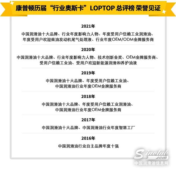 润滑油行业“奥斯卡”LubTop2021颁奖,康普顿又双叒叕...获奖了!