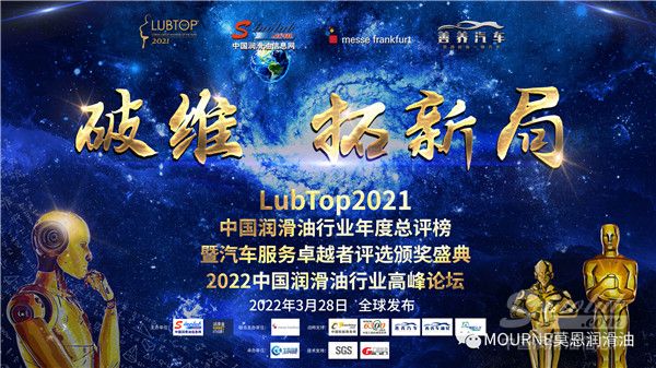 3月28日,由 中 国 润 滑 油 信 息 网 (www.sinolub.com)、《润滑油市场》杂志发起主办,法兰通联展览(北京)有限公司(AMR 中国国际汽保汽配展主办方)联合主办的LubTop2021总评榜暨汽车后市场卓越者评选颁奖典礼、2022中国润滑油行业高峰论坛通过线上全媒体平台全球发布。