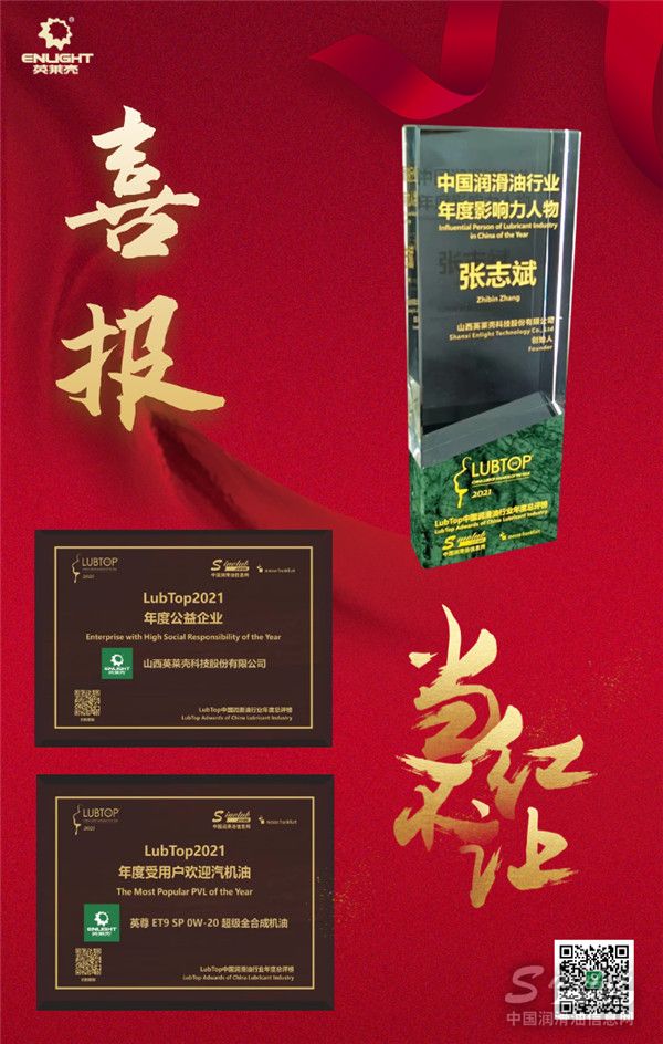 近日,由中国润滑油信息网举办的“LubTop2021中国润滑油行业年度总评榜”颁奖典礼在北京隆重举办。英莱壳凭借出众的产品品质和品牌影响力,荣膺“LubTop2021年度受用户欢迎汽机油”奖和“LubTop2021年度公益企业”称号,同时,英莱壳董事长张志斌先生还被评为“中国润滑油行业年度影响力人物”!