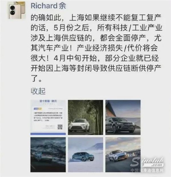 对此,华为余承东就何小鹏昨天的发言,在PYQ发文:上海如果不能复工复产,5月之后所有科技/工业产业涉及上海供应链的,都会全面停产,尤其是汽车产业!经济损失/代价将会很大!4月中旬开始,部分企业就已经开始因上海等封闭导致供应链断供停产了。