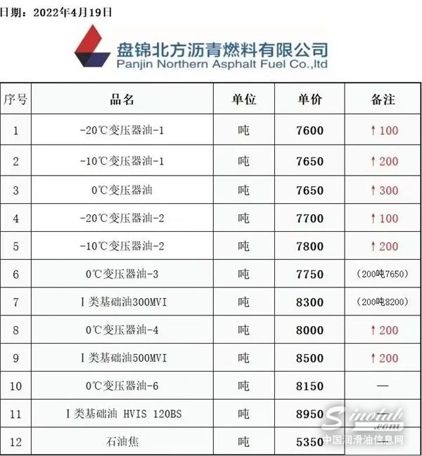 受国际原油价格和库存紧张影响, 国内生产商上调国产基础油货价格。