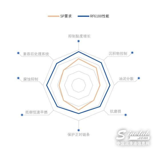 RF6188复合剂由优质清净剂、分散剂、抗氧剂和抗磨减摩剂等添加剂精制而成,该复合剂调制的5W-30油品已通过API SP级汽油机油要求的所有台架,满足美国石油协会API SP标准。覆盖SAE 5W-20、5W-30、10W-30、10W-40、15W-40等黏度级别。推荐加剂量为8.2%。