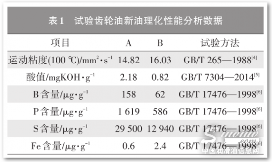 在台架及实车试验过程中采用的为 A、B 2 种品牌80W-90/GL-5重负荷车辆齿轮油。同一试验车变速箱及驱动桥内统一装入相同试验油。油品的分析数据见表1。
