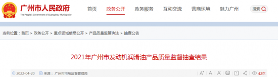 2021年第四季度,广州市市场监督管理局对发动机润滑油产品质量进行了监督抽查,共抽查了15批次样品,经检验,有1批次产品不符合标准要求。