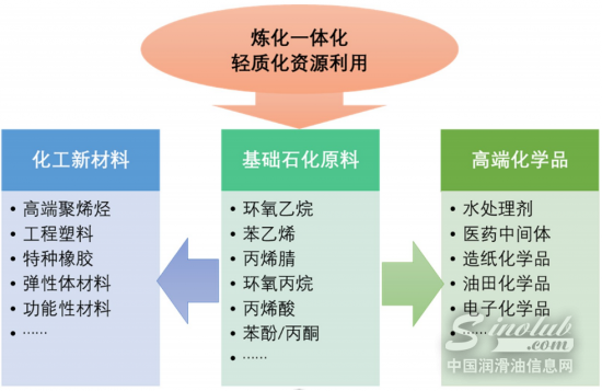 炼油、烯烃、芳烃生产采取 “装置规模大型化、原料多元化、炼化一体化冶 的产业发展模式,通过烯烃延伸加工和石化深加工项目规划, 使炼油产业实现从燃料型向化工型转型升级。