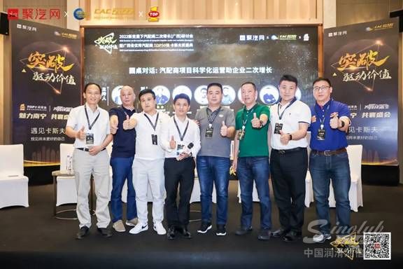 接下来的两场圆桌也是本次研讨会的一大亮点。第一场圆桌主题为“汽配商项目科学化运营助企业二次增长”,邀请到南宁市正品惠汽车配件有限公司总经理陈涛、南宁市车誉冠汽车配件有限公司总经理梁永忠、广西创路汽车配件有限公司总经理杨路伟、南宁市奇捷汽车配件有限责任公司总经理郁合柱、南宁市方鸿洋贸易有限公司总经理戴国锋、南宁市飞云汽车维修连锁董事长杨文平、突破(TOP1)润滑油B2C华南大区销售总监王福建7位行业精英,与主持人付小军一同围绕“选品要素、营销设计、地推服务、系统合作”等关键词进行充分交流探讨。