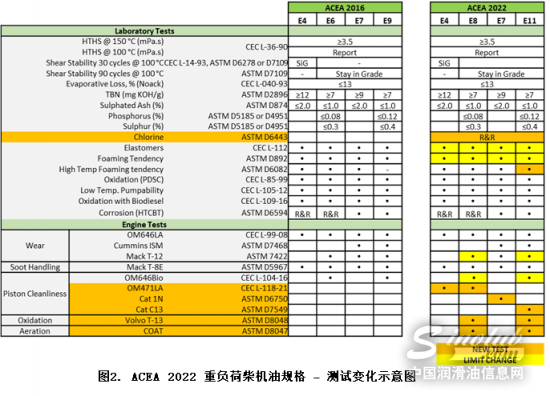新规则中对部分模拟测试也进行了更新,包括增加对发动机油氯含量的跟踪、加严橡胶兼容性与抗泡性的限值以及拓展高温抗泡性到所有级别。