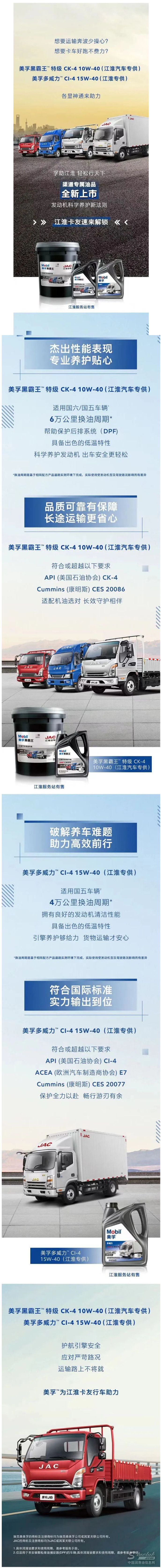 江淮1卡联合美孚推出国六美孚黑霸王润滑油 专供江淮守护行车安全