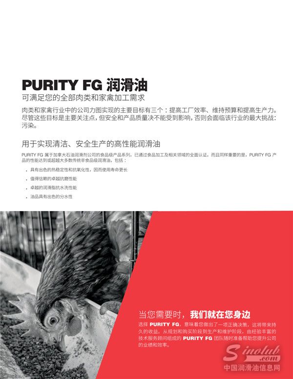 PURITYTM FG润滑油,一直摩拳擦掌,精进产品实力,为更多肉类和家禽行业用户提高更强大的助益。