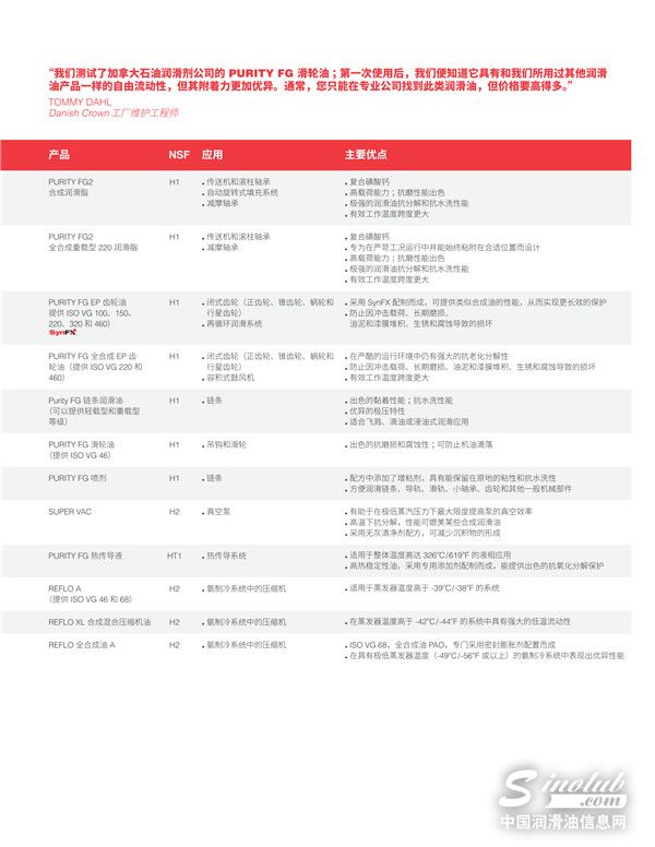 它是加拿大石油食品级产品系列,已通过食品加工及相关领域的全面认证——