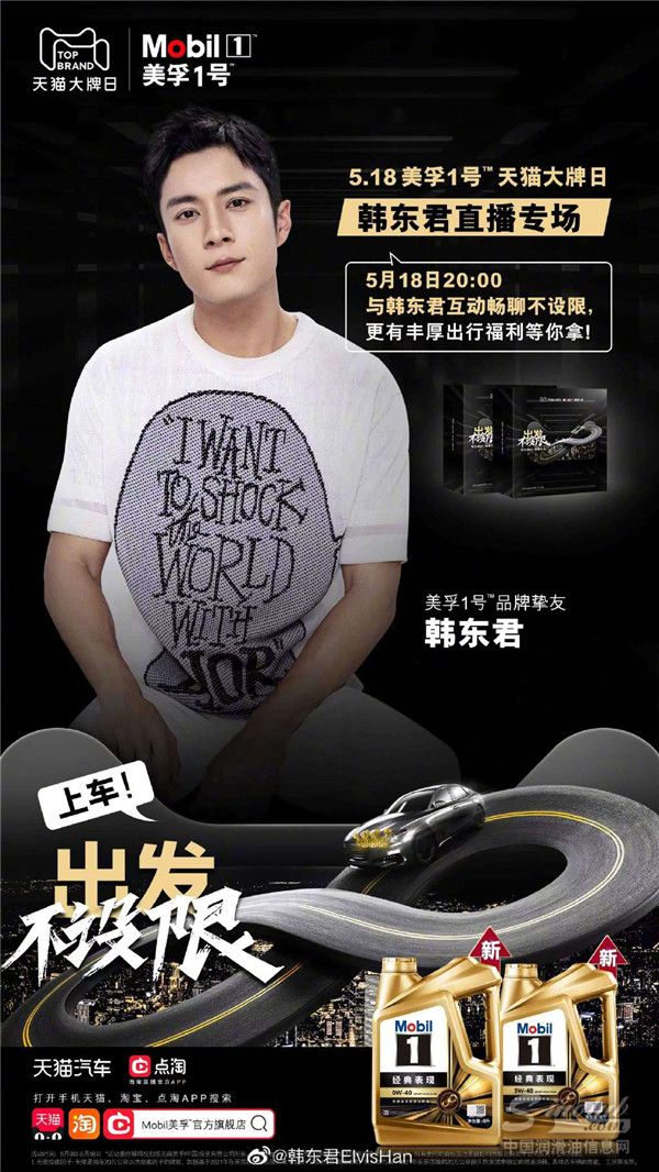 【美孚1号品牌挚友韩东君空降518美孚天猫直播间,分享“出发不设限”的故事】