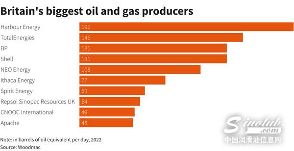 以石油日当量产量看,英国排名前五的油气生产企业为Harbour Energy、道达尔、bp、壳牌、NEO Energy。