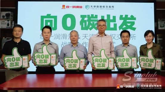 为加快推进“双碳”目标的实施,6月2日下午,由统一润滑油与天津排放权交易所(以下简称天排所)共同发起的“低碳供应链联盟”正式签约。双方就探寻多样合作模式签署战略合作协议,携手推进行业“向0碳出发”,为国家实现“碳达峰、碳中和”的伟大愿景贡献自身力量。当天,统一石化CEO李嘉、天津排放权交易所总经理李天等双方相关领导共同见证这一重要时刻。